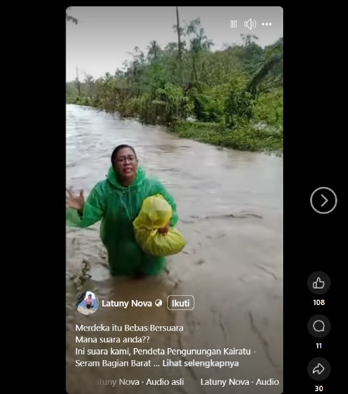 Di tengah ketidakpedulian pemerintah, media sosial menjadi satu-satunya tempat “berteriak”. Unggahan video banjir dari akun Latuny Nova langsung mendapat simpati publik. Warganet menyerukan agar pemerintah daerah dan pusat membuka mata.