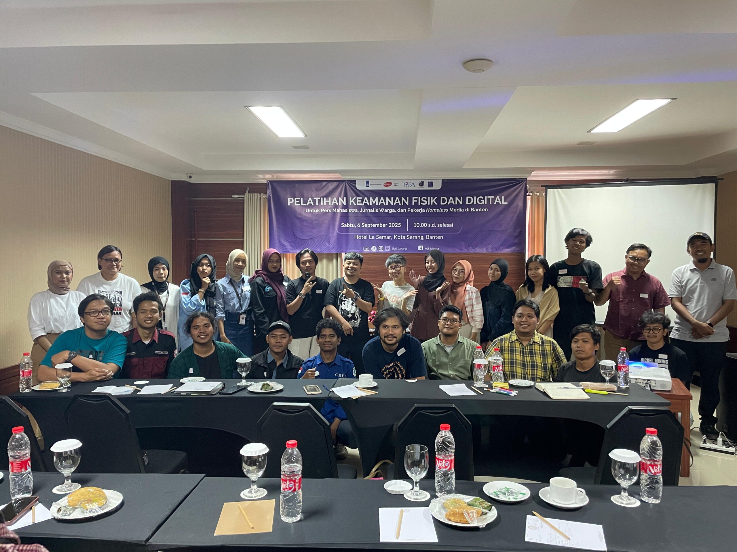 titastory, Banten – Aliansi Jurnalis Independen (AJI) Jakarta menggelar pelatihan keamanan fisik dan digital untuk Pers Mahasiswa, Jurnalisme Warga, hingga pekerja Homeless Media di Hotel Le Semar, Kota Serang, Banten pada Sabtu, 6 September 2025. Pelatihan ini menghadirkan dua narasumber yakni Founder PurpleCode Dhyta Caturani dan Koordinator Komite Keselamatan Jurnalis (KKJ) Erick Tanjung.