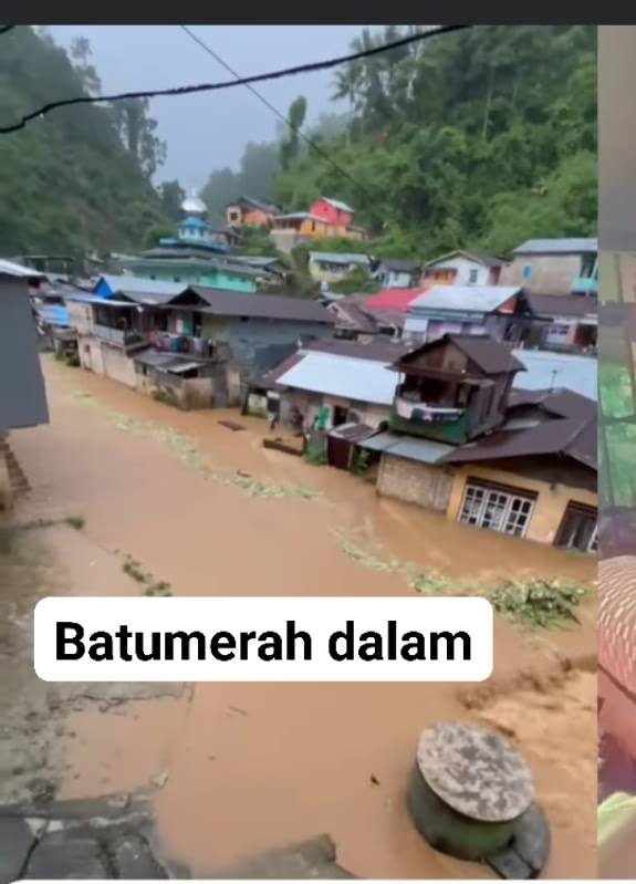 Banjir juga merendam sejumlah ruas jalan dan pemukiman warga. Di kawasan Arema, Desa Batu Merah, saluran drainase dilaporkan jebol, menyebabkan air meluap ke dalam rumah-rumah warga dan sejumlah rumah kos. Warga bernama Fatur Refra menyampaikan keluhannya lewat unggahan media sosial,
