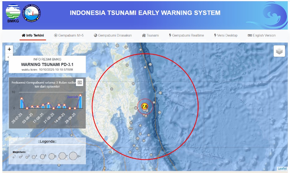 Jakarta, – Gempa bumi tektonik berkekuatan Magnitudo 7,4 mengguncang wilayah Laut Filipina dekat Kepulauan Talaud, Sulawesi Utara, pada Jumat, 10 Oktober 2025, pukul 08.43 WIB.