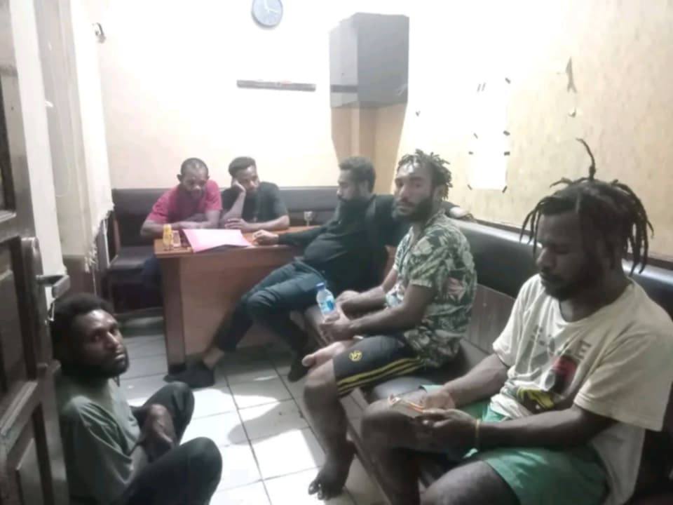 Keterangan gambar: Mahasiswa yang ditahan oleh Kepolisian Resor Kota (Polresta) Jayapura. Foto: Akun facebook @Varra_Iyaba