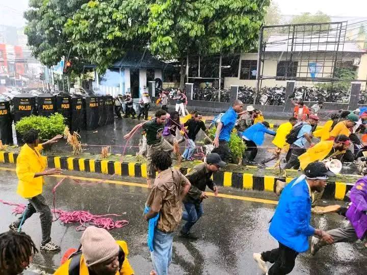 Aksi yang awalnya berlangsung damai ini digelar untuk menyoroti perampasan ruang hidup masyarakat adat di Tanah Papua akibat ekspansi tambang dan proyek infrastruktur. Namun, situasi berubah tegang saat aparat keamanan berupaya membubarkan massa dengan gas air mata, water cannon, dan tembakan peluru.