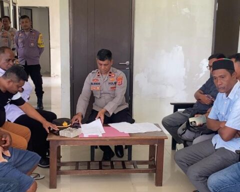 Wasile, Halmahera Timur, – Laut di pesisir Subaim, Kecamatan Wasile, Halmahera Timur, berubah warna menjadi merah kecoklatan. Lumpur pekat mengendap di sepanjang garis pantai.