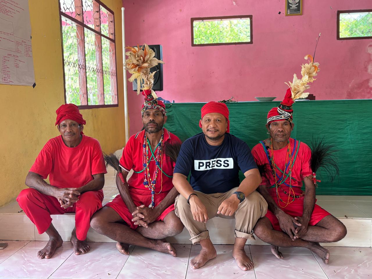 Keterangan gambar: Jurnalis Christ Belseran bersama tokoh adat Suku Upau yang mendiami kawasan Seram Selatan, Kabupaten Maluku Tengah, Maluku, Foto: titastory.id