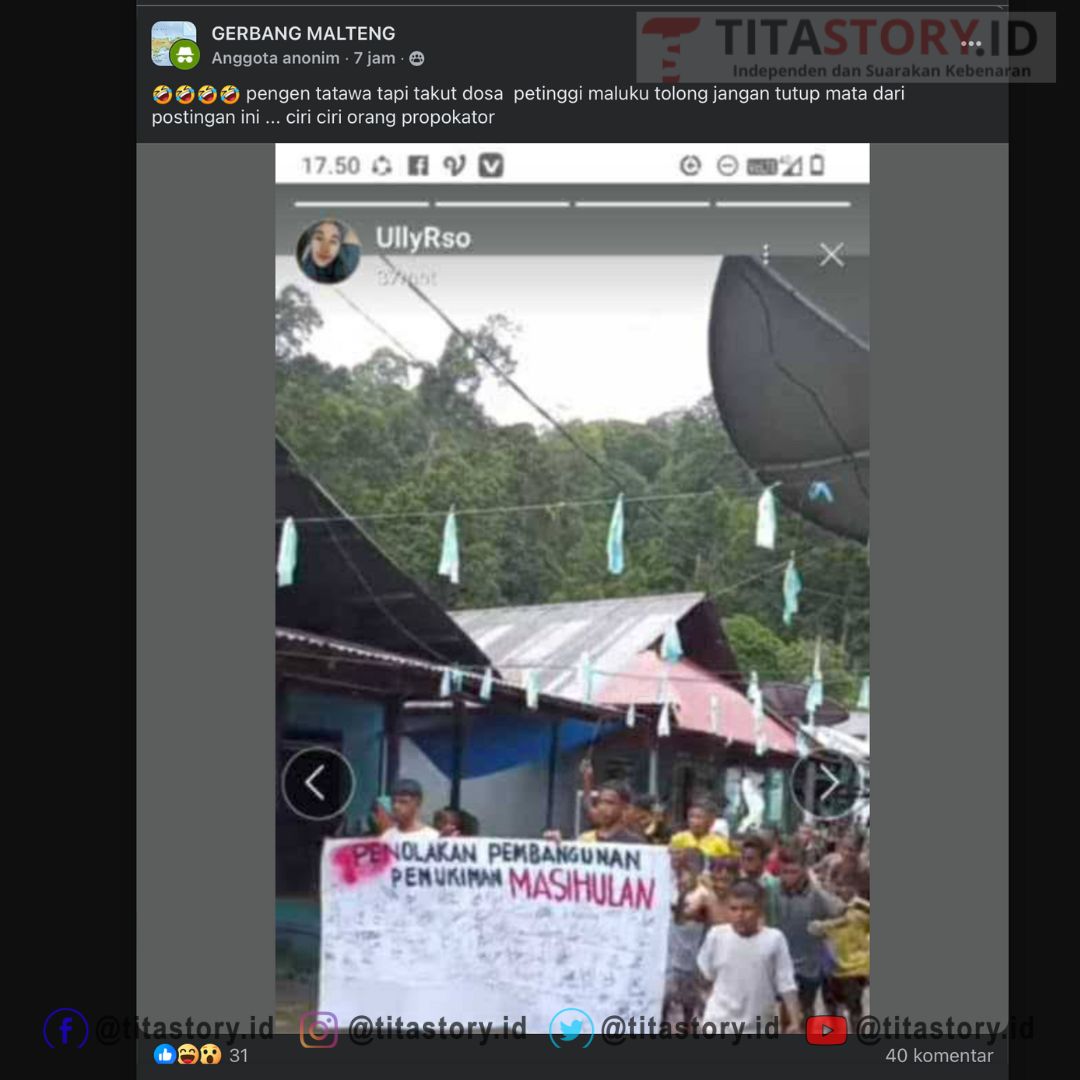 “Pembangunan rumah warga pasca konflik bisa-bisanya ada aksi penolakan? Apa motifnya? Serius nanya,” tulis Iwan, sembari menandai sejumlah pejabat seperti Abdullah Vanath, Hendrik Lewerissa, hingga anggota DPR-RI dan DPRD Maluku Tengah.