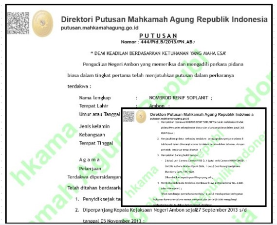 Ia menjelaskan bahwa dalam putusan tersebut, Soplanit divonis 8 bulan penjara karena terbukti mencuri dua unit kamera Canon 1100D, satu unit kamera Nikon D3000, satu unit ponsel Nexian tipe 5626, dan sebuah kotak kosong Blackberry tipe 9222.