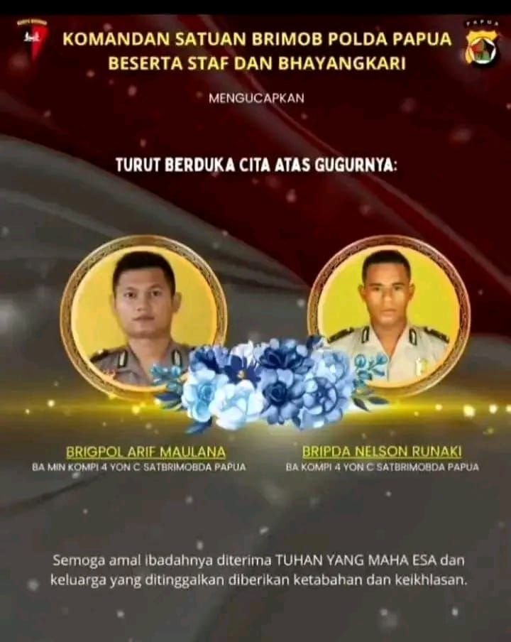 titastory, Nabire – Dua anggota kepolisian ditemukan tewas di Jalan Trans Nabire–Dogiyai, Kilometer 128, Rabu, 13 Agustus 2035. Keduanya, Brigpol Arif Maulana dan Bripda Nelson Runaki, diduga meninggal akibat luka bacokan di bagian wajah dan leher.