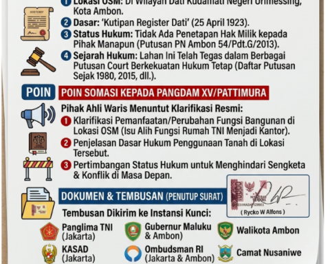 TITASTORY.ID – Sidang gugatan pembatalan surat hibah tanggal 5 September 2011 di Pengadilan Negeri Ambon, Rabu (13/10) antara Rycko Weyner Alfons dan Jaqualine Imelda Zaiya mutlak dimenangkan Rycko Weyner Alfons.