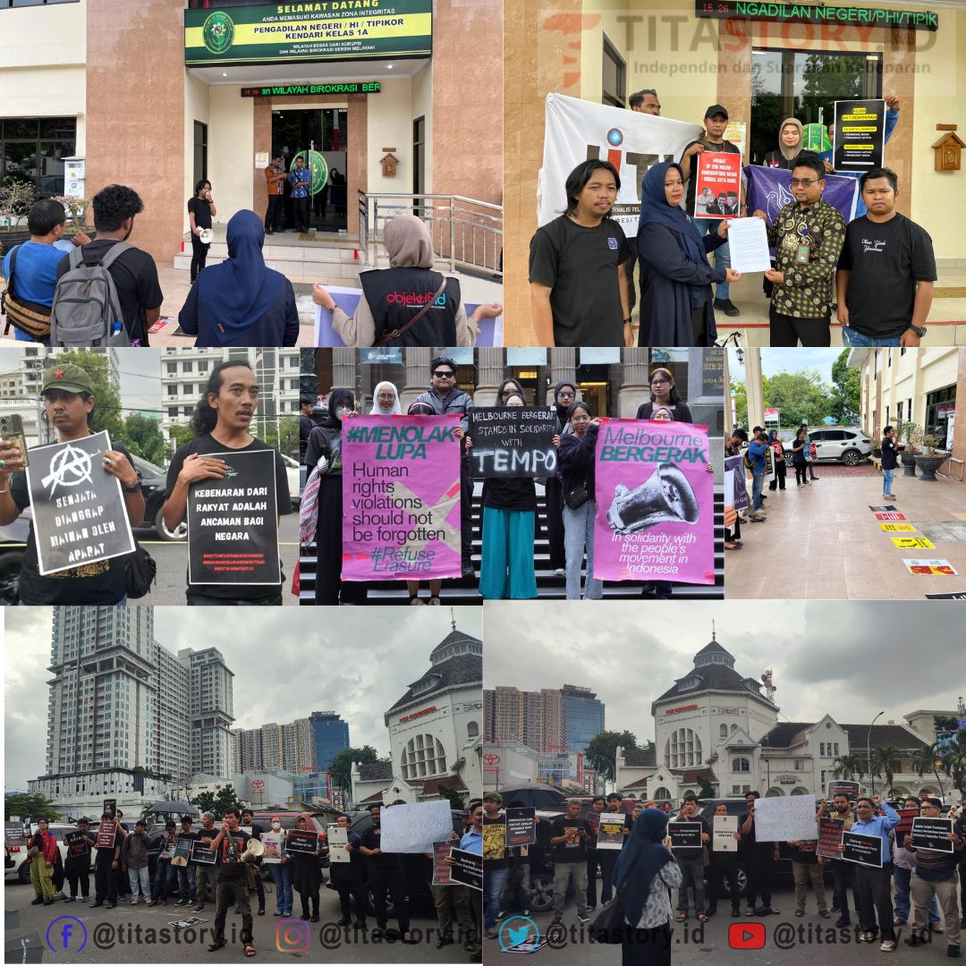 Kendari, Medan, dan Melbourne – Gelombang solidaritas untuk Tempo dan kebebasan pers di Indonesia bergema dari berbagai penjuru, mulai dari Kendari, Medan, hingga Melbourne, Australia. Aksi-aksi ini digelar untuk menentang gugatan perdata Rp200 miliar yang diajukan Menteri Pertanian Amran Sulaiman terhadap Tempo, yang dinilai sebagai bentuk pembungkaman media dan ancaman terhadap demokrasi.