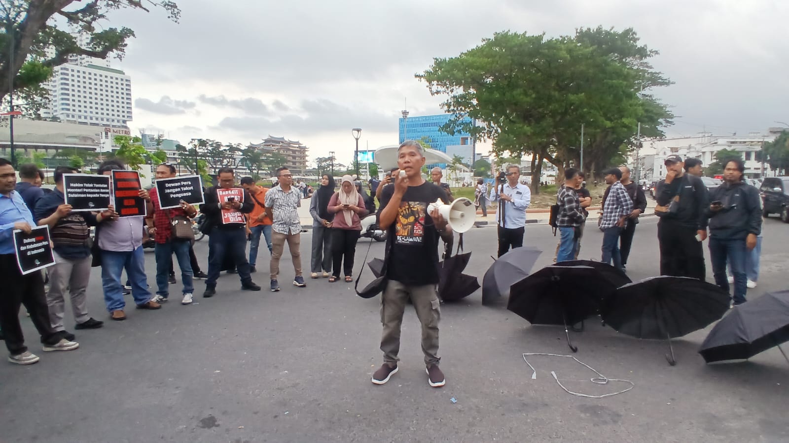 “UU Pers yang katanya menjamin kebebasan jurnalis justru dibungkam oleh negara sendiri,” ujar Aray dalam orasinya.