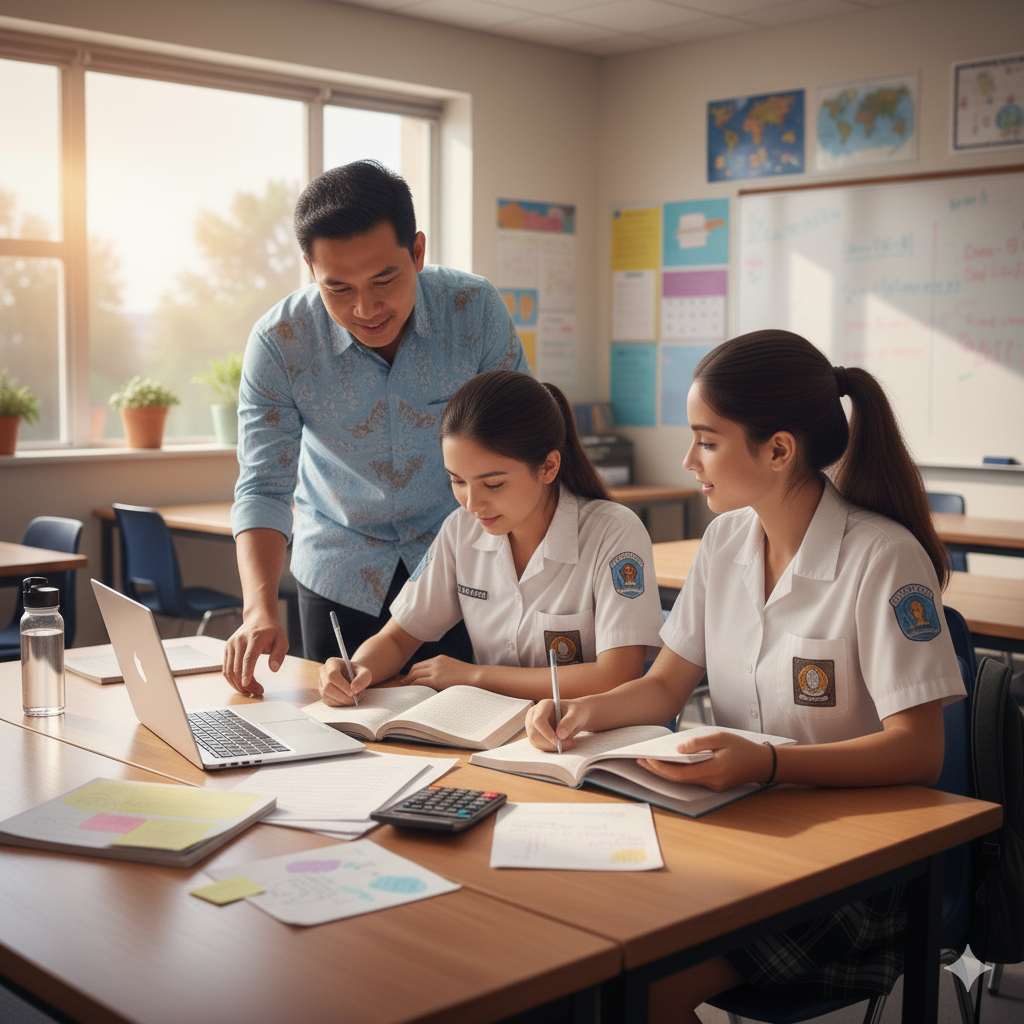 Korban, yang berinisial NR (13), saat itu sedang menyelesaikan tugas sekolah bersama temannya, NF, di dalam kelas.