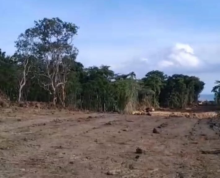 Keterangan gambar: Kondisi pembongkaran lahan oleh PT Batu Licin dan Beton Asphalt (PT BBA) di Pulau Kei Besar, Kabupaten Maluku Tenggara. Foto: Ist