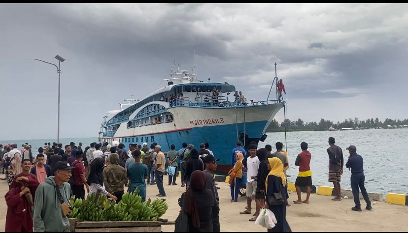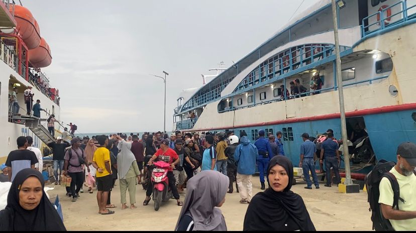 Sejak pagi, para pemudik telah memadati area pelabuhan untuk menunggu kedatangan KM Fajar Indah II, salah satu kapal yang melayani rute antarpulau di wilayah tersebut.