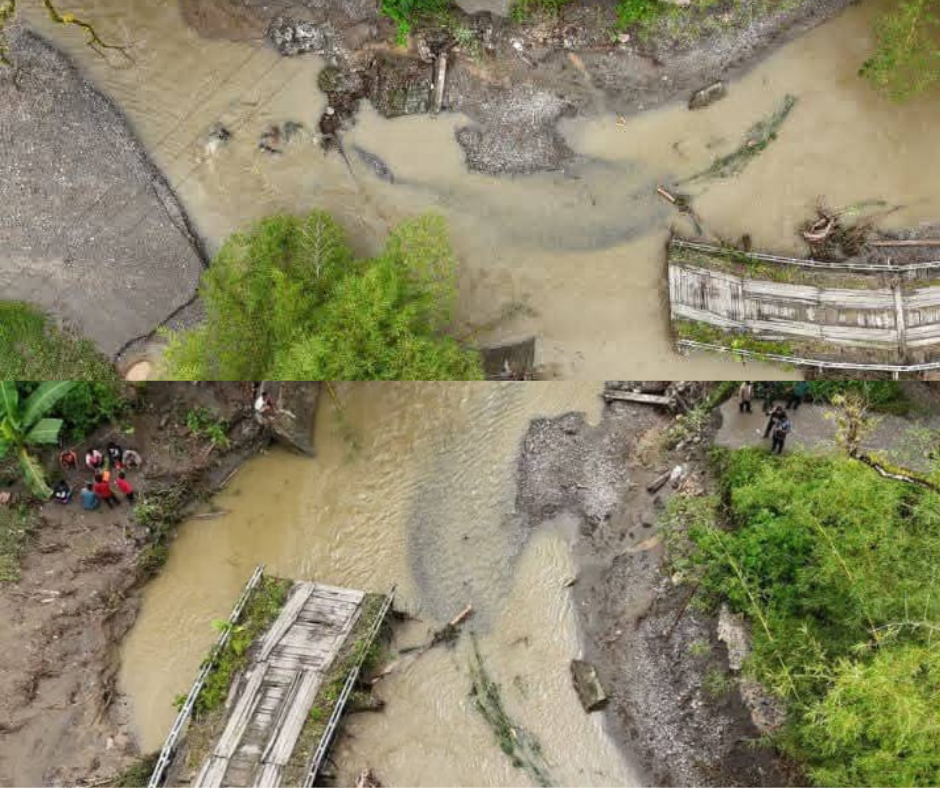 “Benar, kejadian itu disebabkan hujan dengan intensitas sedang hingga lebat yang tidak berhenti. Volume air meluap dan menghanyutkan jembatan,” ujar Rolly kepada Titastory.id melalui pesan WhatsApp.