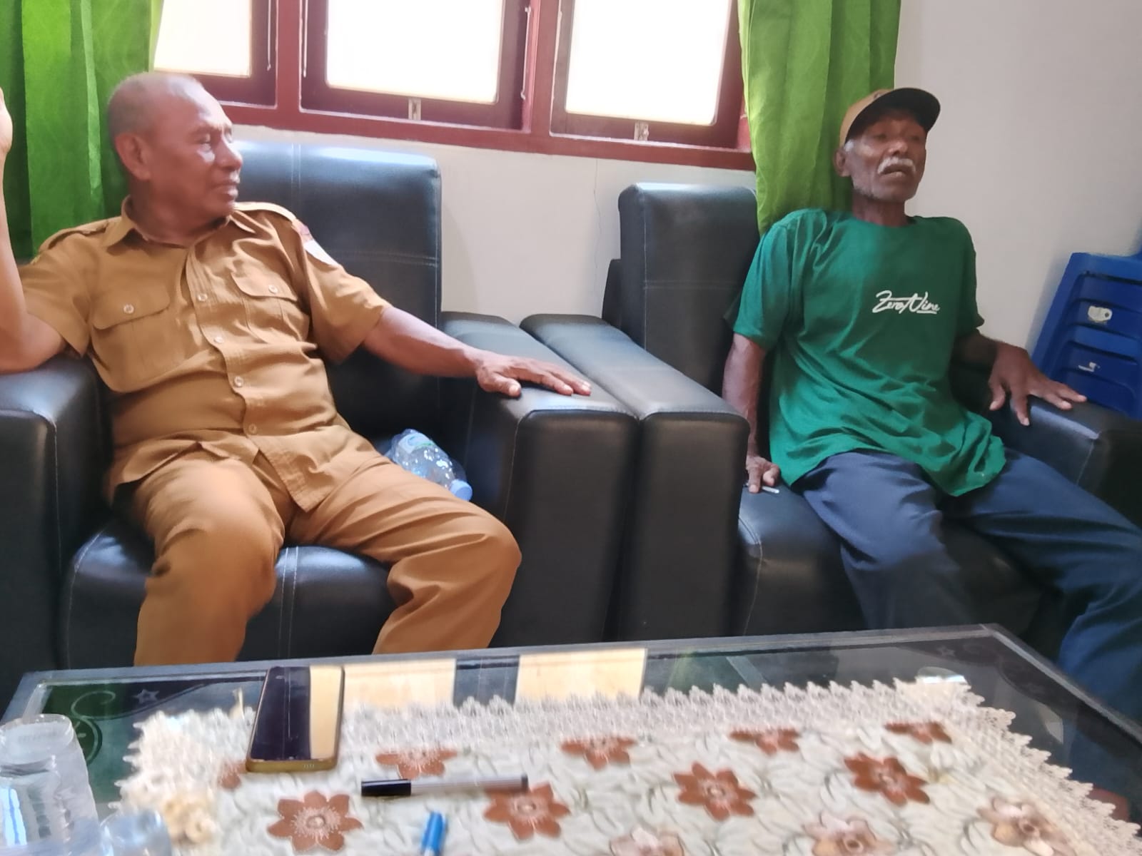 Caption: Diskusi dan Raja Negeri Tehoru bersama Sekretaris Saniri saat ditemui titastory di Kantor Negeru Tehoru, Foto: Sofyan Hatapayo.
