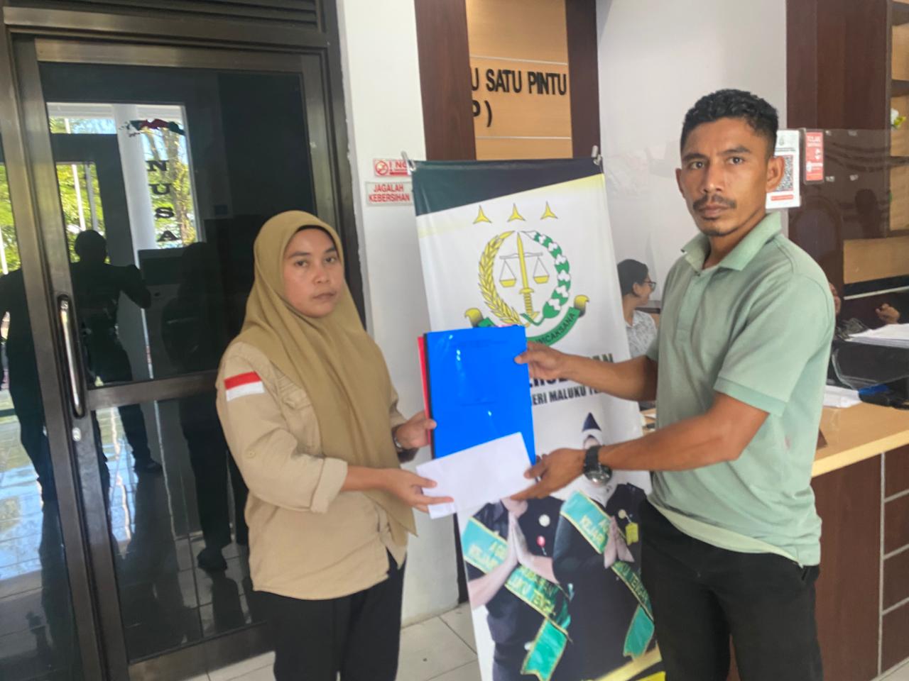 Kterangan gambar: Warha saa melayangkan laporan di Kejaksaan Negeri Malteng,Foto: Ist