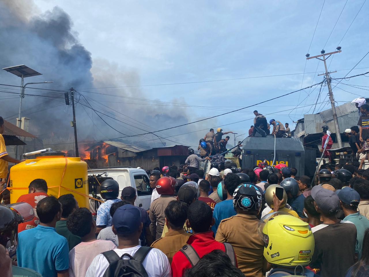 titastory, Bula – Sebuah kebakaran besar melanda kawasan padat di Jalan Wailola, Kota Bula, Kabupaten Seram Bagian Timur (SBT), Maluku, Selasa (10/6/2025) siang sehingga memicu kepanikan warga. Tanggul penahan gelombang di wilayah pesisir turut rusak parah, sementara puluhan pertokoan sembako, rumah, dan kontrakan menjadi mangsa si jago merah .