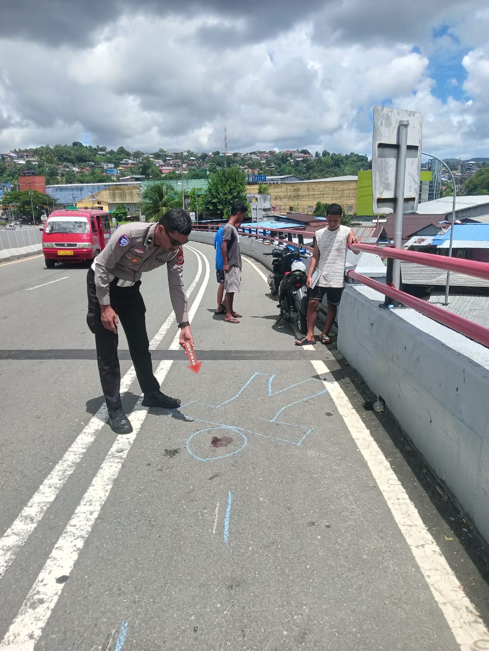 Ambon, — Kecelakaan lalu lintas tunggal kembali terjadi di atas Jembatan Merah Putih (JMP), Kecamatan Sirimau, Kota Ambon, Minggu (12/4/2026) siang. Seorang perempuan bernama Indah Sari (24), warga Ahuru, dilaporkan meninggal dunia setelah sepeda motor yang dikendarainya hilang kendali dan menghantam pembatas jalan.