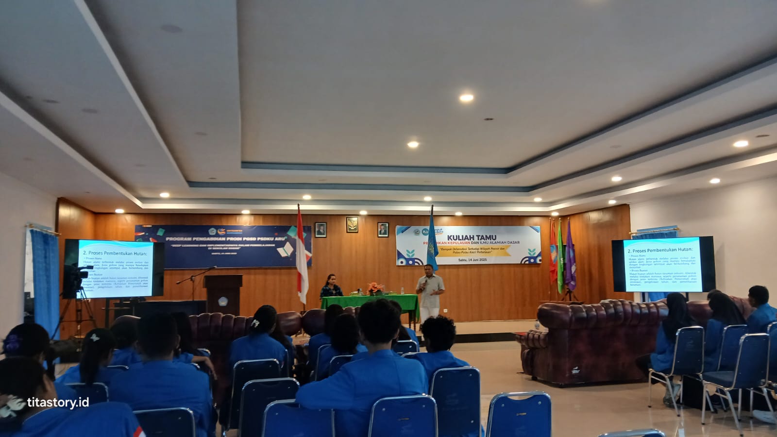 titastory, Dobo – Persoalan lingkungan hidup menjadi bahasan utama dalam kuliah tamu bertajuk Dampak Deforestasi Terhadap Wilayah Pesisir dan Pulau-Pulau Kecil Perbatasan yang digelar Program Studi di Luar Kampus Utama (PSDKU) Kepulauan Aru, Sabtu, 14 Juni 2025. Kegiatan ini merupakan bagian dari pemenuhan mata kuliah Pendidikan Kepulauan dan Ilmu Alamiah Dasar.
