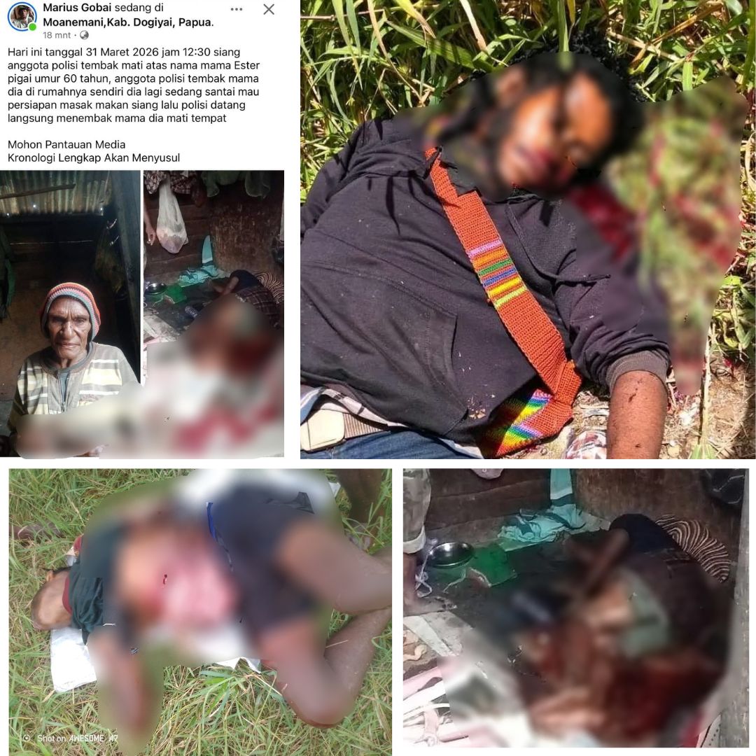 Papua Tengah,— Koalisi Penegak Hukum dan Hak Asasi Manusia Papua menyebut sedikitnya empat warga sipil tewas dalam insiden kekerasan di Kabupaten Dogiai, Papua Tengah, pada 31 Maret 2026. Koalisi menduga peristiwa ini berkaitan dengan operasi aparat keamanan pascakematian seorang anggota polisi berinisial JE.