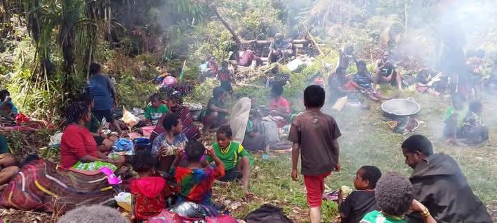 Keterangan gambar: Kondisi warga sipil dari dua kampung dilaporkan mengungsi ke kampung-kampung tetangga serta ke kawasan hutan untuk mencari perlindungan. Warga memilih mengungsi akibat kontak senjata yang terjadi antara TPNPB-OPM dan aparat militer Indonesia di Kampung Puyagia dan Kampung Pesiga, Distrik Sugapa, Kabupaten Intan Jaya, pada Jumat malam, 6 Februari 2026. Kredit foto: @WawanCandra