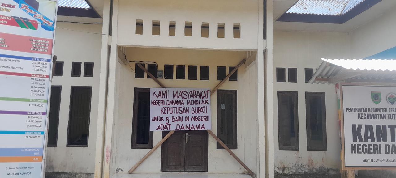 titastory, Seram Timur – Warga masyarakat adat Negeri Danama, Kabupaten Seram Bagian Timur (SBT), memalang Kantor Desa Danama menggunakan kayu balok sebagai bentuk protes terhadap pergantian Raja Negeri Danama yang dinilai tidak sesuai prosedur. Aksi pemalangan itu terjadi pada Selasa, 2 September 2025.