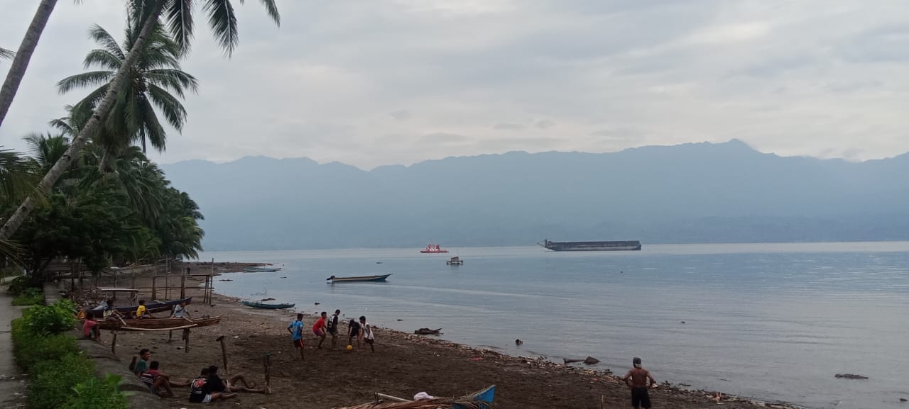 titastory, Seram Selatan — Sebuah sore yang tenang menyelimuti pesisir Pulau Seram. Di atas hamparan pasir yang bercampur kerikil, geluk, serpihan kayu, dan sobekan kertas warna-warni, sejumlah anak lelaki saling berebut bola. Lapangan dadakan itu terbentuk kala air laut surut, menciptakan ruang bermain yang sempit namun meriah.