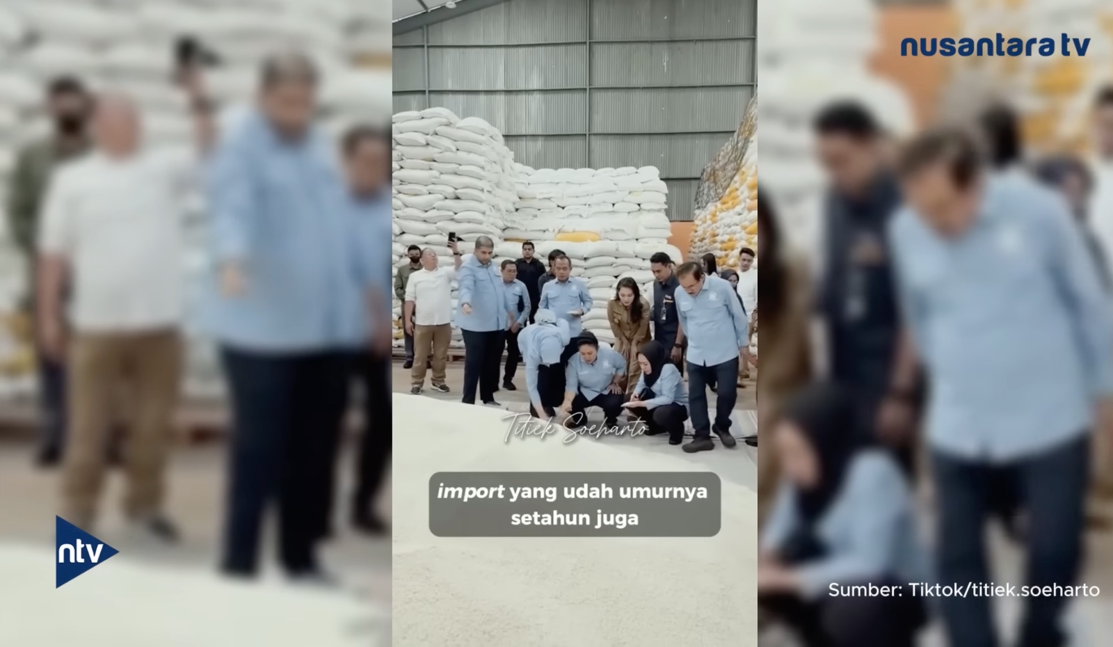Keterangan gambar: Ketua Komisi IV DPR RI Titiek Soeharto memimpin inspeksi mendadak (sidak) ke Gudang Perum Bulog Tabahawa, Maluku Utara. Dalam sidak tersebut, Tim Komisi IV menemukan sekitar 1.200 ton beras yang sudah berubah warna menjadi abu-abu ternyata tersimpan sejak Mei 2024. Sumber foto: Tangkapan layar video NusantaraTV dan TikTok titiek.soeharto