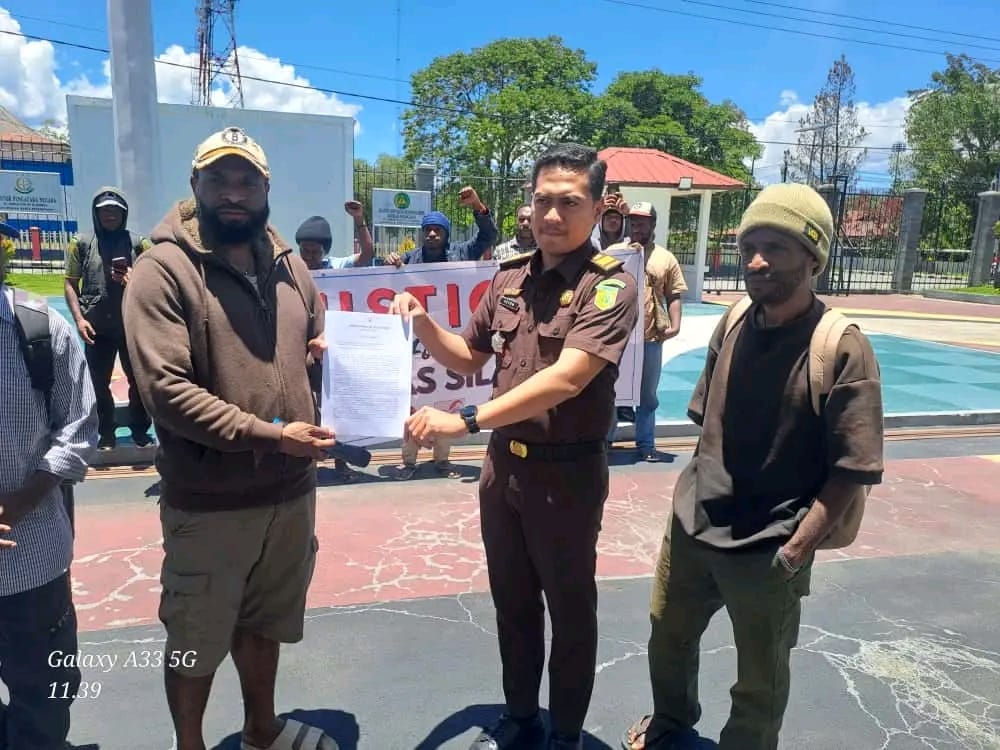 titastory, Yahukimo, Papua Pegunungan — Ratusan warga menggelar aksi mogok di pusat Kota Dekai, Kabupaten Yahukimo, Selasa, 30 September 2025. Mereka menuntut Jaksa Penuntut Umum (JPU) menuntut hukuman maksimal terhadap empat anggota aparat yang diduga terlibat dalam penembakan yang menewaskan Tobias Silak dan melukai Naro Dapla (17), yang kemudian meninggal dunia.
