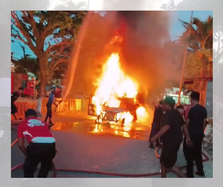 Ambon, – Sebuah mobil terbakar di Jalan Jenderal Sudirman, depan Kafe Infinite, Kawasan Batumerah, Kota Ambon, Minggu (25/1/2026) sore. Peristiwa ini sempat memicu kepanikan warga dan pengendara yang melintas akibat bunyi ledakan yang terdengar dari arah kendaraan.