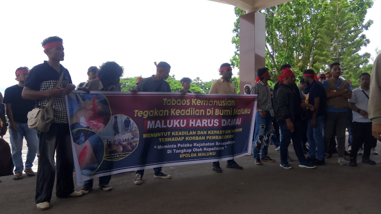 Ambon, — Desakan untuk penanganan hukum yang tegas dan transparan kembali mengemuka di Kota Ambon. Sejumlah pemuda yang mengatasnamakan perwakilan masyarakat Seram Bagian Timur (SBT) dan Kepulauan Kei menggelar aksi unjuk rasa di depan Kantor Gubernur Maluku, Senin (24/11/2025), menyusul insiden pembacokan terhadap seorang warga SBT, Gozi Rumain (23), di Lorong Putri, Batu Merah, pada 19 November lalu.