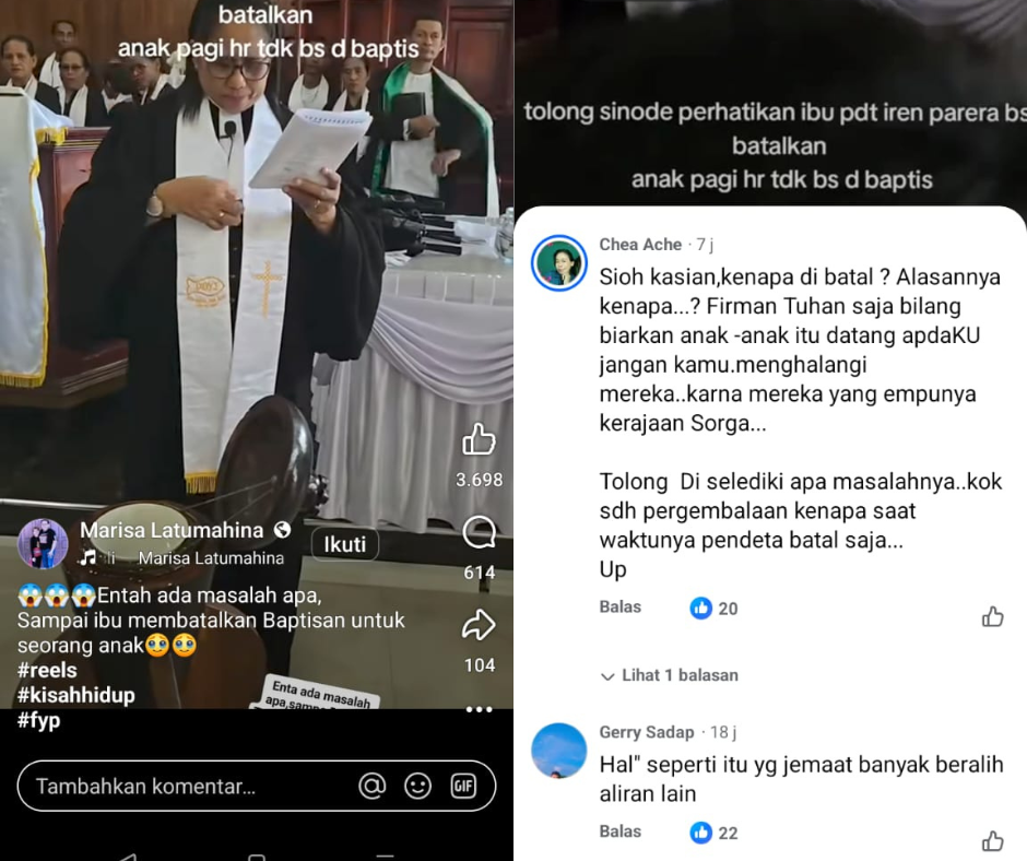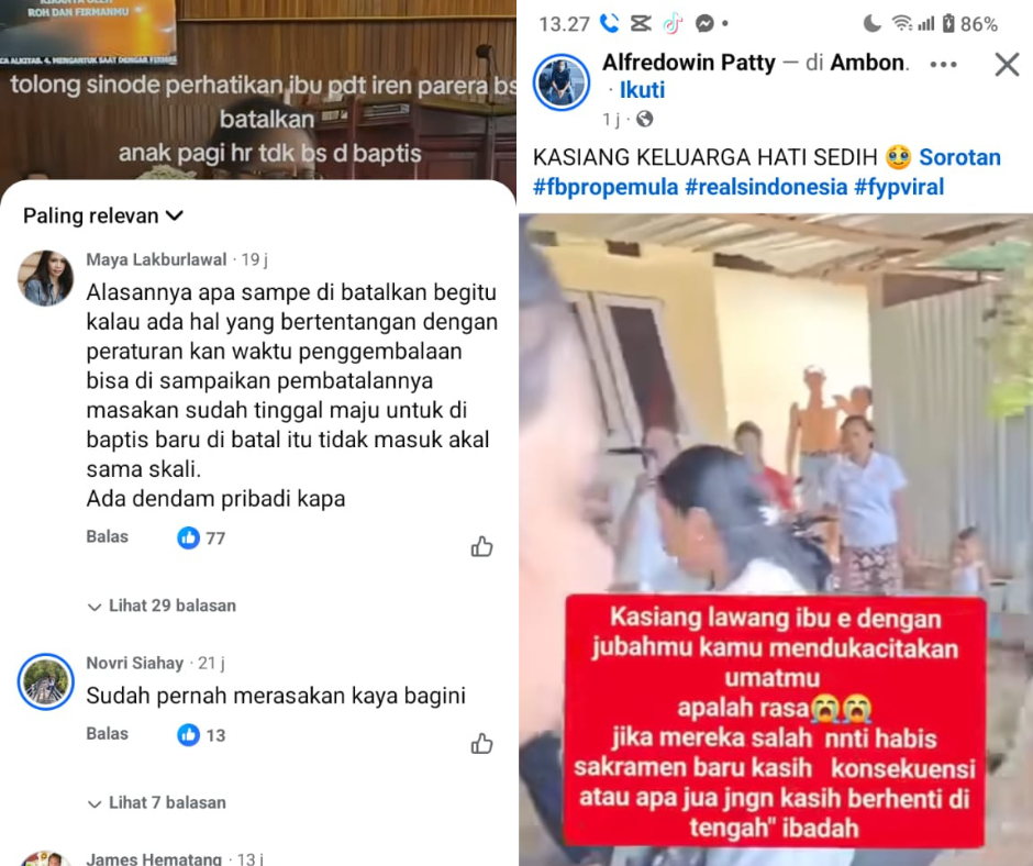 @Maya Lakburawal dalam komentarnya mempertanyakan alasan sampai dibatalkan begitu, kalau ada hal yang bertentangan dengan peraturan kan ada waktu pergembalaan bisa di sampaikan pembatalannya masakan sudah tinggal maju untuk dibaptis baru di batal itu, tidak masuk akal sama sekali. Adakah dendam pribadi kapa?”.