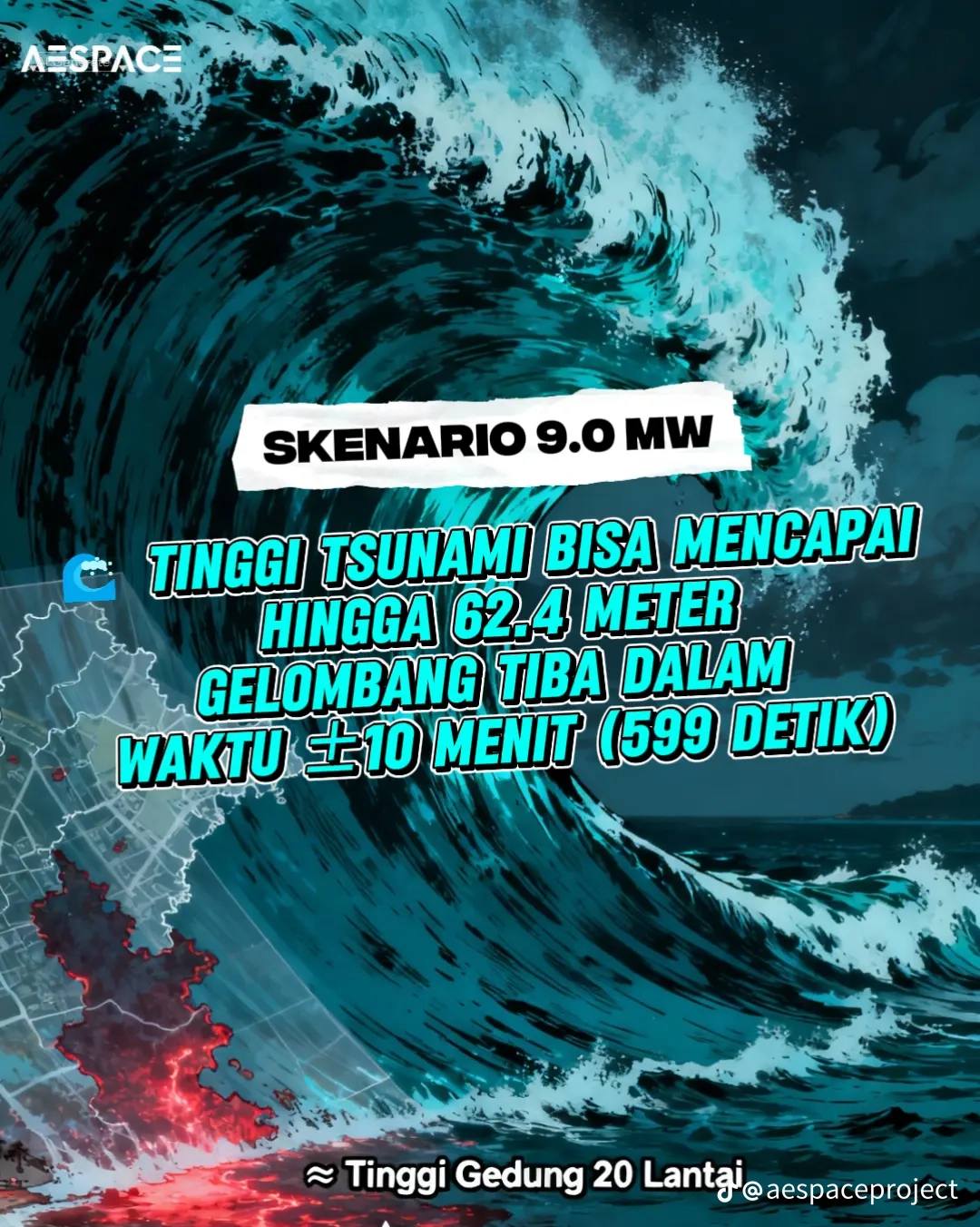 Simulasi ilmiah sebelumnya memang menunjukkan potensi gelombang besar, tetapi angka 62,4 meter harus disertai sumber penelitian, bukan viral tanpa rujukan akademik.