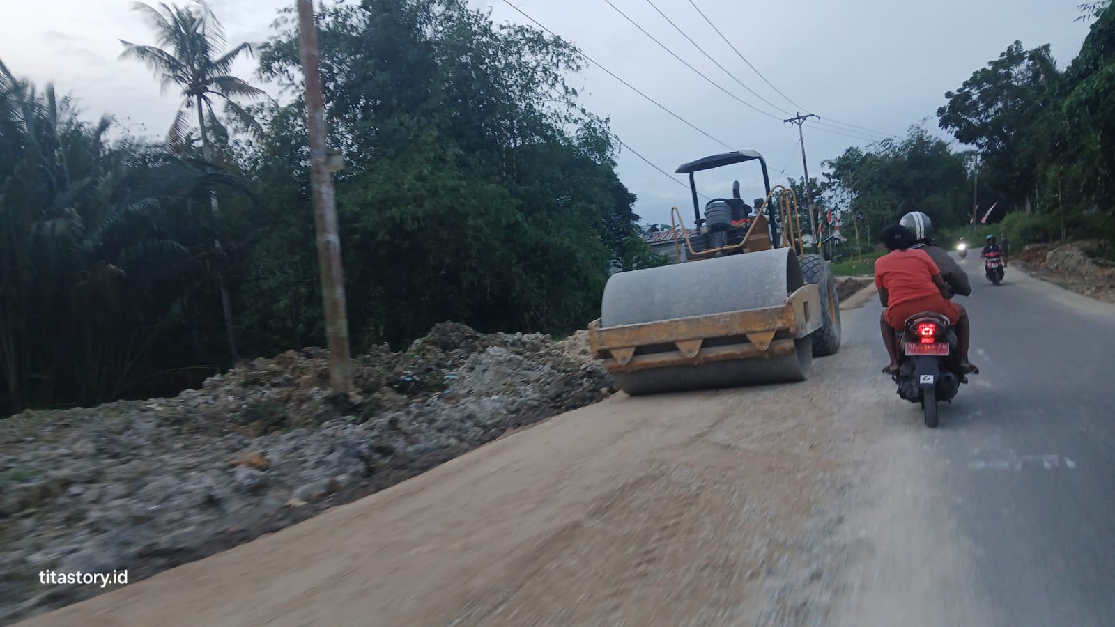 Material galian C di keruk menggunakan alat berta untuk pengaspalan ruas jalan di Kabupaten Kepulauan Aru, Foto : John/titastory.id