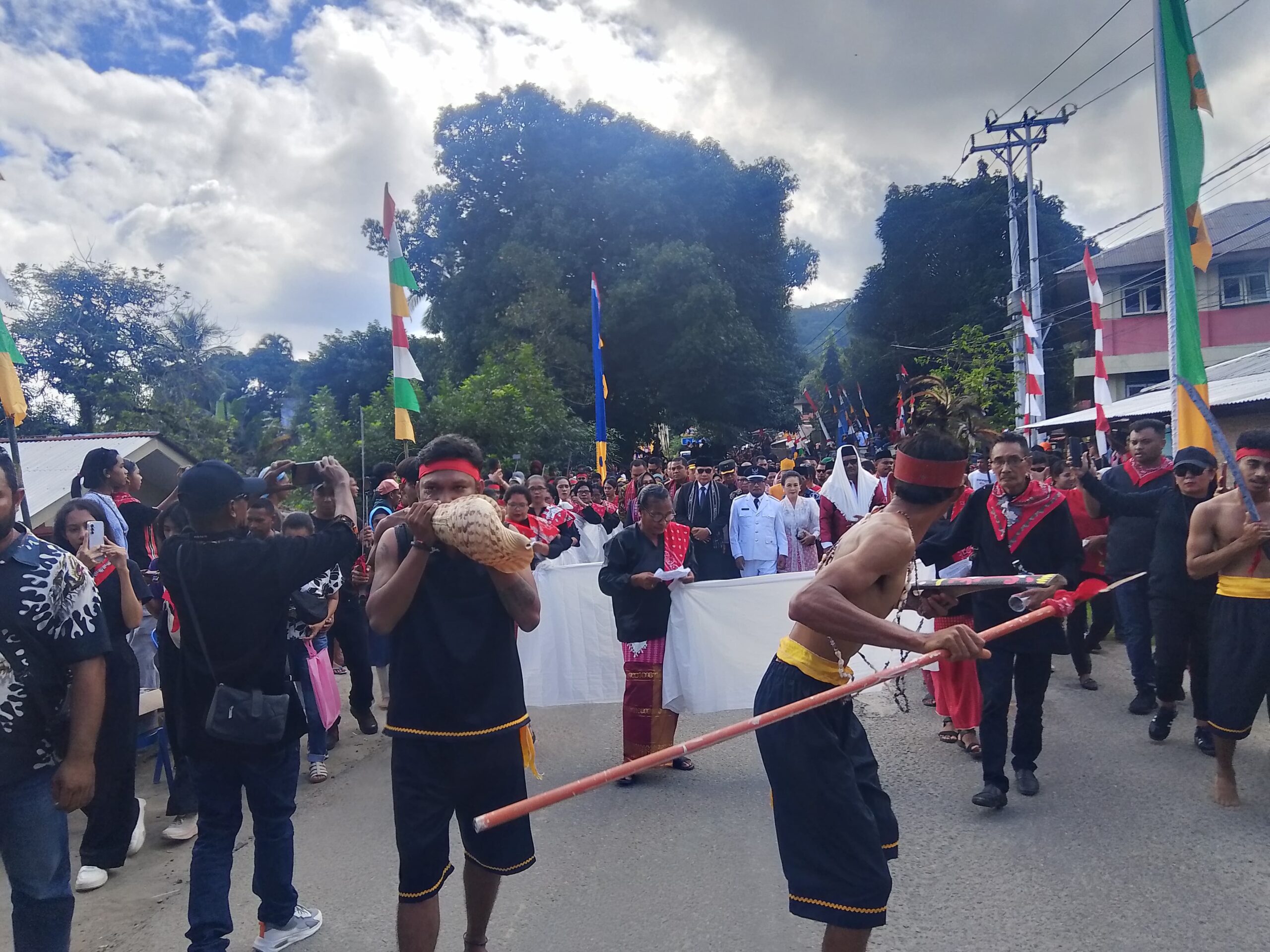 Prosesi kain gandong di Acara Pelantikan Raja Amahusu. Foto : Ed/titastory