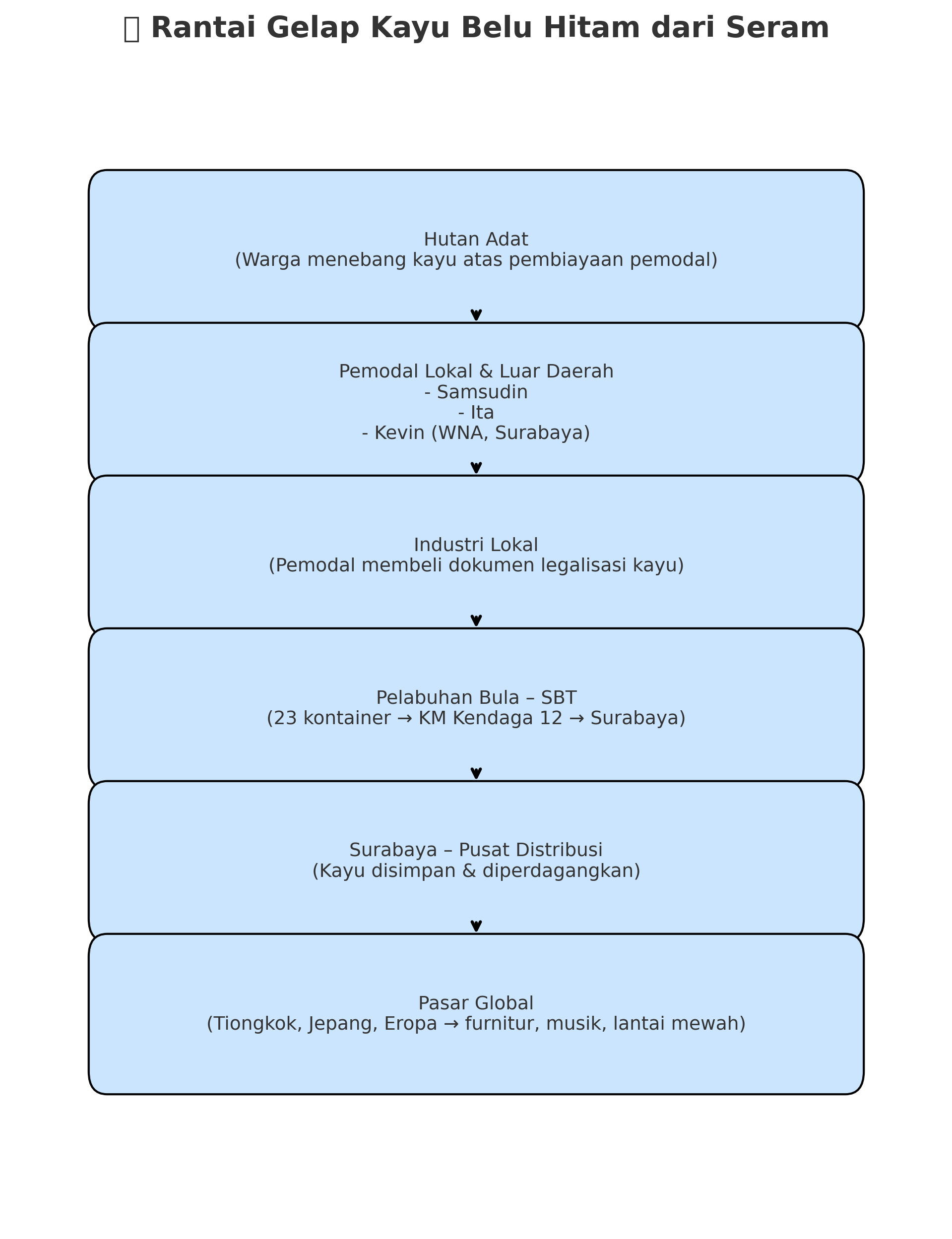 - Kevin → pengusaha asal Surabaya, WNA, membeli kayu dengan cara serupa.