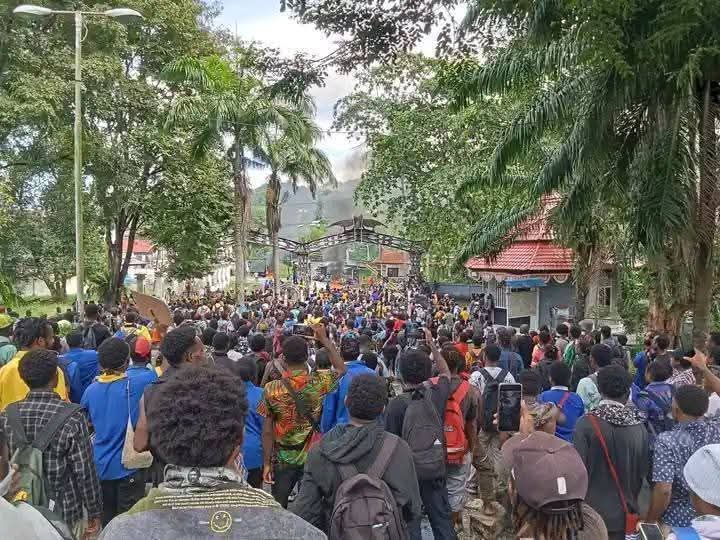 Keterangan gambar : Ribuan mahasiswa terlihat memadati halaman kampus Univesritas Cendrawasih (Uncen), Kamis (22/5/2025). Foto: akun Facebook @Beny Murib.