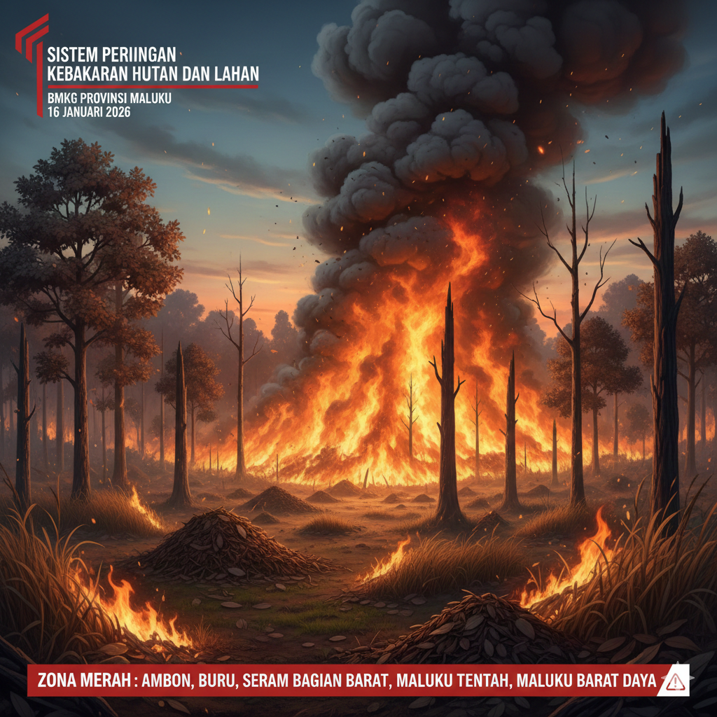 Ambon, — BMKG menetapkan Kota Ambon sebagai wilayah dengan risiko kebakaran hutan dan lahan (Karhutla) tertinggi di Provinsi Maluku. Berdasarkan rilis Sistem Peringatan Kebakaran Hutan dan Lahan (SPARTAN) per Jumat (16/1/2026), Ambon masuk kategori Zona Merah atau sangat mudah terbakar.
