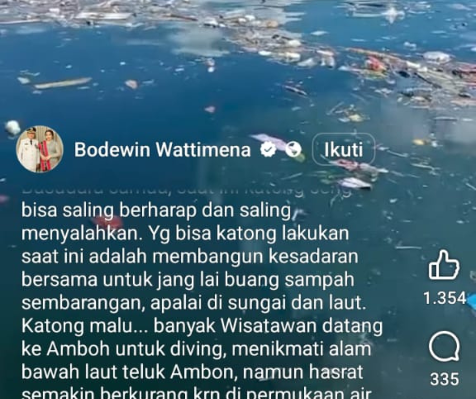 “Kita malu, banyak wisatawan datang ke Ambon untuk diving dan menikmati alam bawah laut Teluk Ambon, tapi hasrat itu semakin berkurang karena di permukaan laut, sampah bertebaran,” tulis Wattimena.