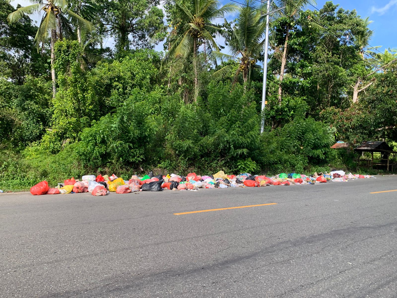 Kondisi paling parah terpantau di kawasan Dusun Jembatan 2. Tumpukan sampah nyaris menutup sebagian ruas jalan utama—jalur aktif yang setiap hari dilalui kendaraan menuju Kota Ambon. Pada malam hari, penyempitan badan jalan akibat sampah berisiko memicu kecelakaan, terutama bagi pengendara roda dua.