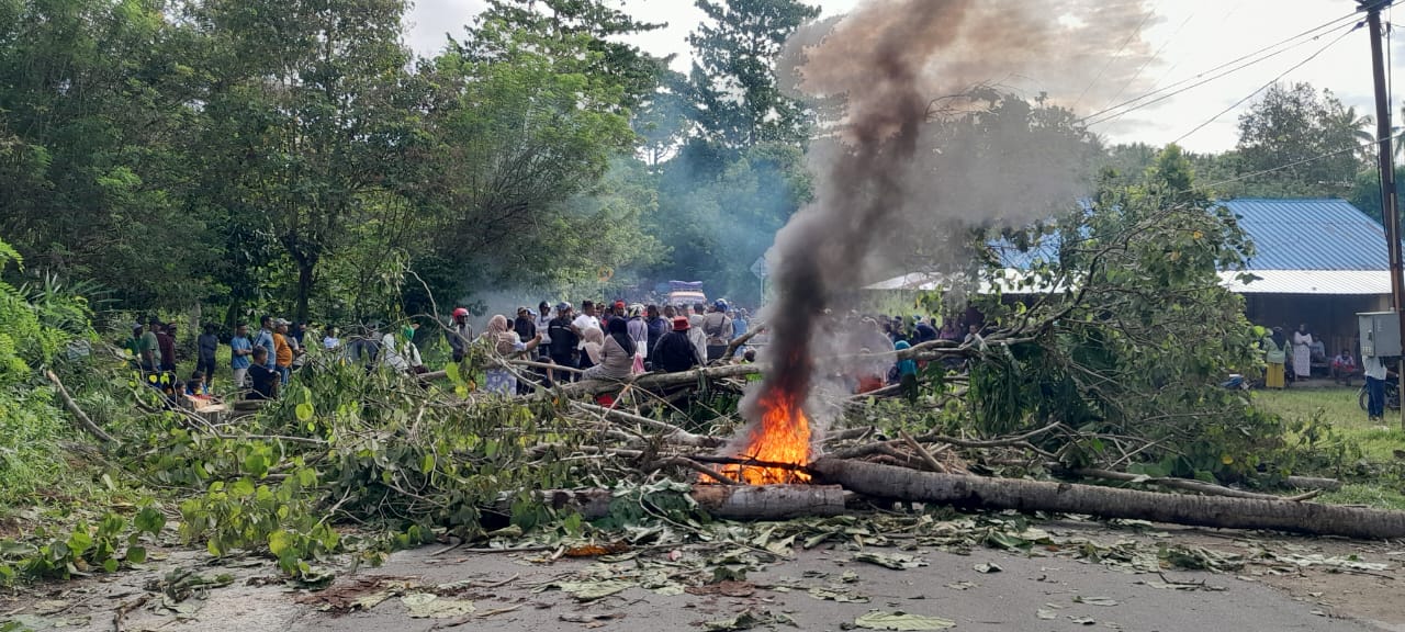 Pasca bentrokan, warga memblokade jalan lintas Seram dengan menebang dan merobohkan sejumlah pohon besar ke badan jalan, menyebabkan arus lalu lintas lumpuh total.
