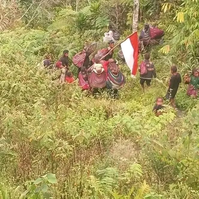 Potret tragis lainnya muncul saat warga mengungsi ke hutan. Para perempuan dan anak-anak membawa bendera merah-putih, bukan untuk merayakan 17 Agustus, tetapi agar tidak ditembak aparat.