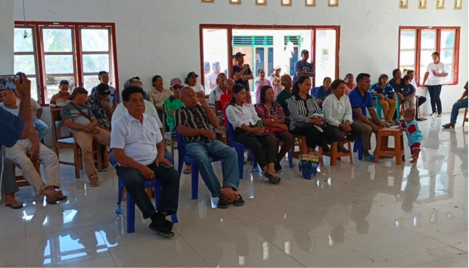 Keterangan gambar: Pertemuan Warga Desa Lermatang dengan Komisi III DPRD Kabupaten Kepulauan Tanimbar (KKT) ketika melakukan kunjungan lapangan di Desa Lermatang, Kecamatan Tanimbar Selatan, pada 21/8/25. Foto: Organisasi Kepemudaan (OKP) Cipayung Plus KKT