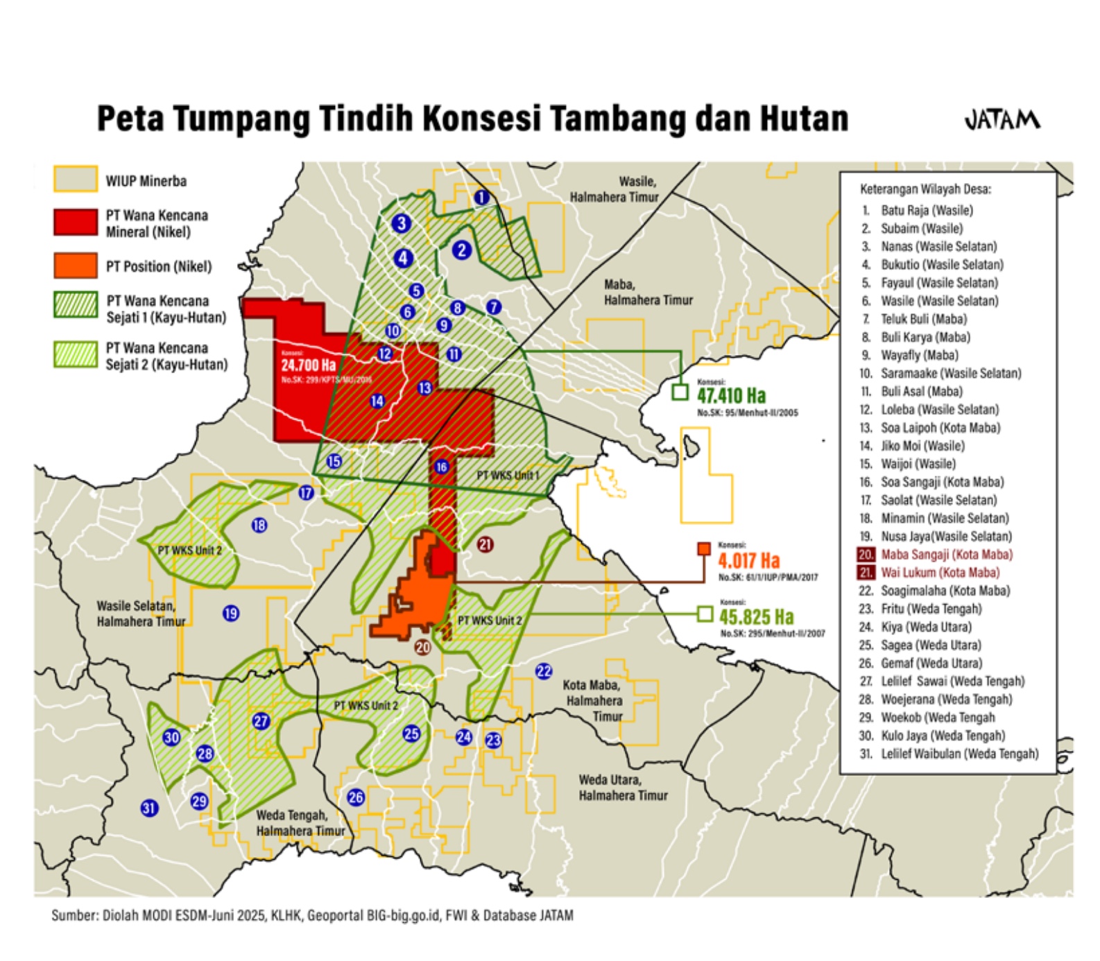 Jakarta, – Di panggung konflik tambang nikel di Halmahera Timur, jejak kekuasaan terbentang mulai dari desa terpencil hingga jaringan global. Di tingkat lokal, perubahan administratif di antara dua desa—Desa Maba Sangaji dan Desa Wailukum—serta dokumen batas yang tiba-tiba muncul tanpa sosialisasi publik, digunakan sebagai mesin legal untuk perluasan konsesi di wilayah adat Moronopo. Aktor-aktor seperti Kasman Mahmud (kepala desa Maba Sangaji), Edi Septiagus Rajab (Kabid Pemerintahan Desa sekaligus Ketua KNPI Haltim), dan Mukdir Lakoda (anggota BPD sekaligus Humas eksternal perusahaan) hanya sebagian dari wajah pemerintah desa yang berubah menjadi mitra korporasi.