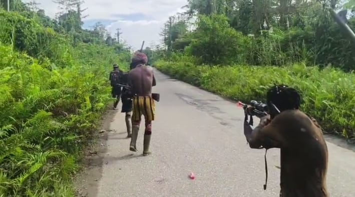 Caption: Suasana sejumlah pasukan kombatan TPNPB sedang melakukan penyerangan di sekitar wilayah Kota Dekai, Kabupaten Yahukimo, Papua Pegunungan, pada Sabtu (31/1/2026). Kredit foto: Tangkapan layar dari video TPNPB yang beredar di sosial media.
