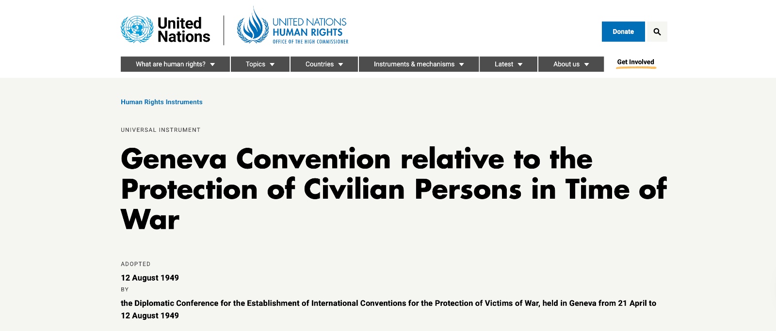 Berikut adalah aturan PBB dalam Konvensi Jenewa tentang Perlindungan Orang Sipil pada Masa Perang (1949)