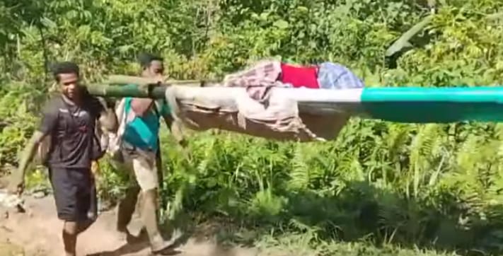 Keterangan gambar: Warga Seram Utara Malteng yang sakit terpaksa harus ditandu untuk mendapat perawatan di instalasi kesehatan, Foto: Ist